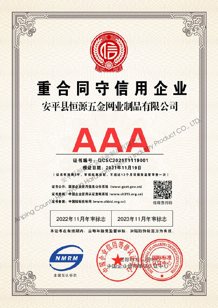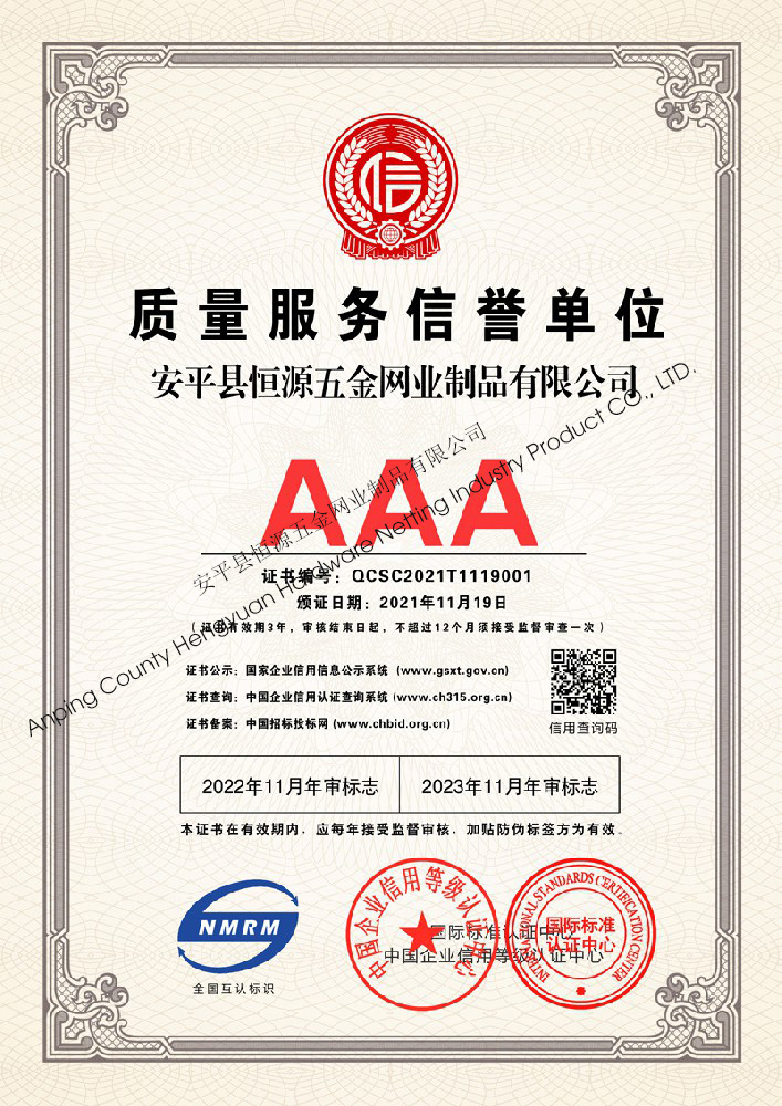 多年來(lái),安平縣恒源五金網(wǎng)業(yè)制品有限公司堅(jiān)持“科技興企、質(zhì)量立業(yè)”的經(jīng)營(yíng)理念和“誠(chéng)心為本、客戶至上”的合作宗旨,優(yōu)化生產(chǎn)工藝,打造優(yōu)質(zhì)產(chǎn)品,提供完善的服務(wù),受到國(guó)內(nèi)外客戶的一致好評(píng),產(chǎn)品行銷(xiāo)全國(guó)各地,并出口美國(guó)、德國(guó)、韓國(guó)、日本、臺(tái)灣等國(guó)家和地區(qū)。